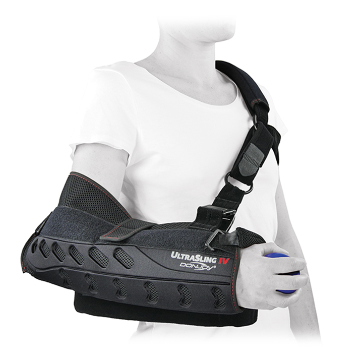 UltraSling IV leads the way in comfort and convenience. The three-point strapping system is easy to put on, while its unique design eliminates pressure on the neck, leading to increased patient comfort and compliance. The soft, breathable inner lining with mesh laminate helps improve ventilation. And, a new, contoured cushion provides the needed abduction while relieving pressure on the ulnar nerve. Ideal for post-operative treatment following, Rotator Cuff repairs, Bankart procedures, Capsular shifts, Glenohumeral dislocation/subluxation, and soft tissue repairs/strains.